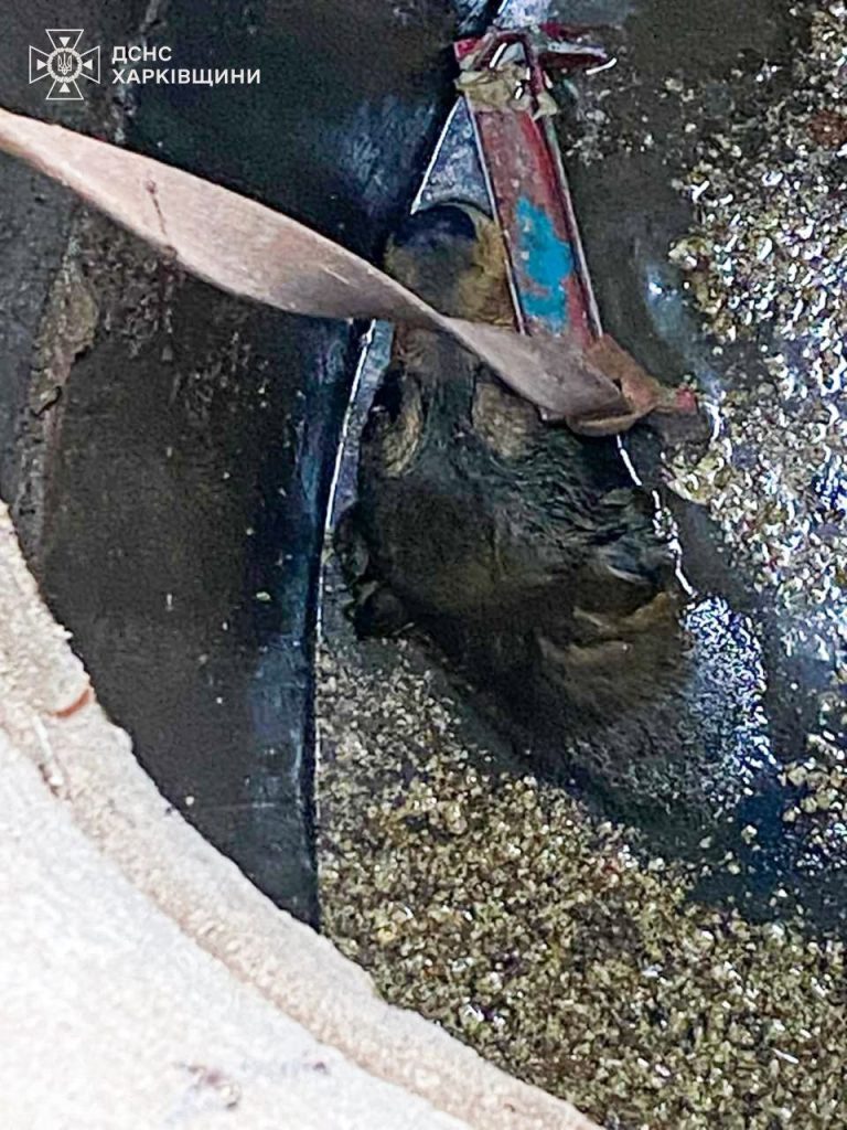Інцидент стався у Шевченківському районі. У ГУ ДСНС в Харківській області розповіли, що пес упав у каналізаційний колодязь із нечистотами на території приватного будинку.