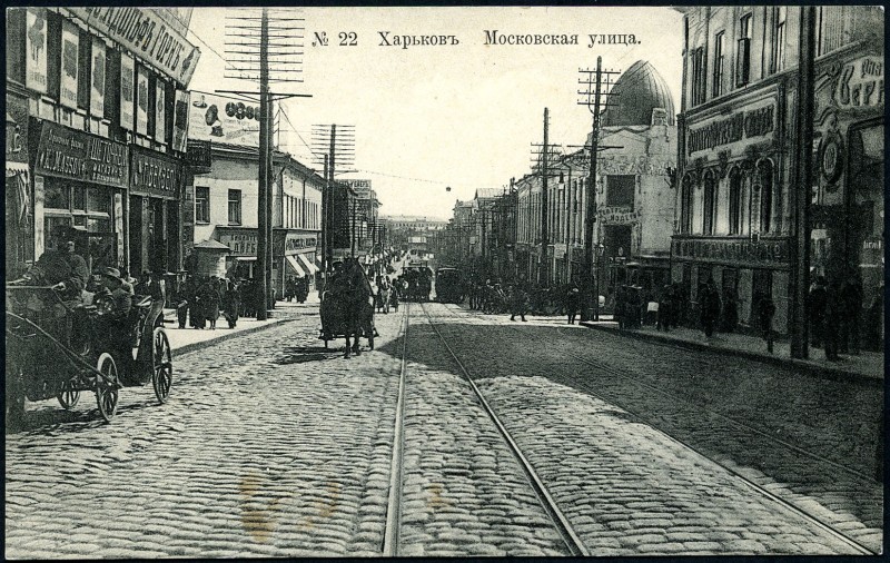 Вид на Московскую улицу (сейчас проспект) от начала в сторону Харьковского моста