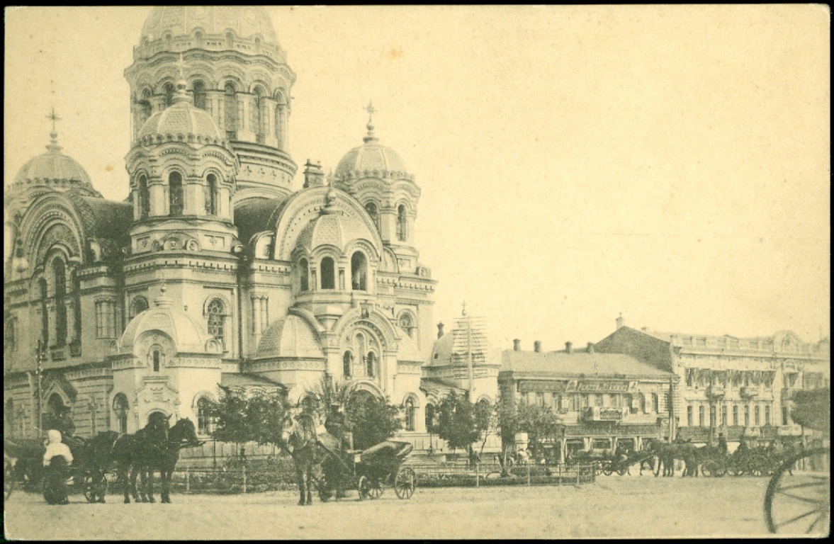 Стойка извозчиков у здания биржи на Николаевской площади (сейчас Конституции), недалеко от угла с Армянским переулком