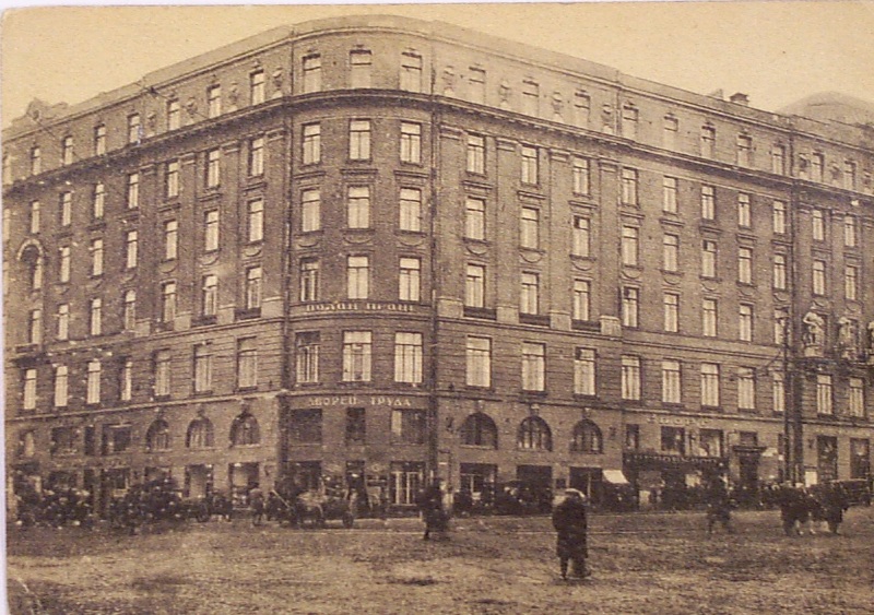 Этот действительно грандиозное дом авторства петербургского архитектора Ипполита Претро (1871-1937) построят за два года, но жителям недолго придется наслаждаться комфортными квартирами – тогда, конечно, никому в голову не могло прийти, что вскоре здесь расположатся всевозможные учреждения, а само величественное сооружение станет «Дворцом труда».