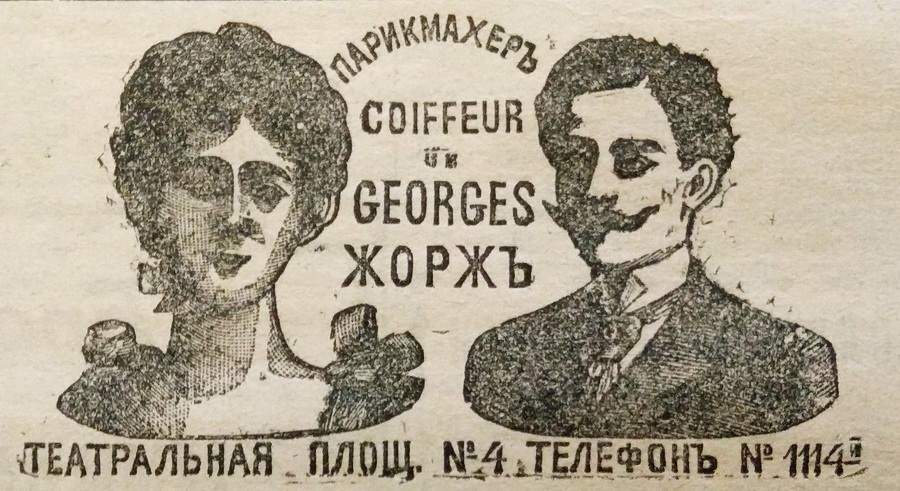 Реклама парикмахерской «Жорж» (находилась в правом крыле драматического театра) из газеты «Южный край», декабрь 1900 года