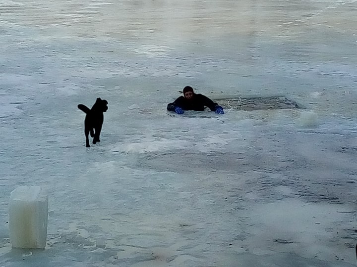Надо подползти к этому месту, но не сильно близко, и дать палку или веревку и вытащить, и выползти обратно. Я иногда люблю выходить на лед, но я очень аккуратно и с родителями. И родители сначала смотрят и говорят можно или нет.