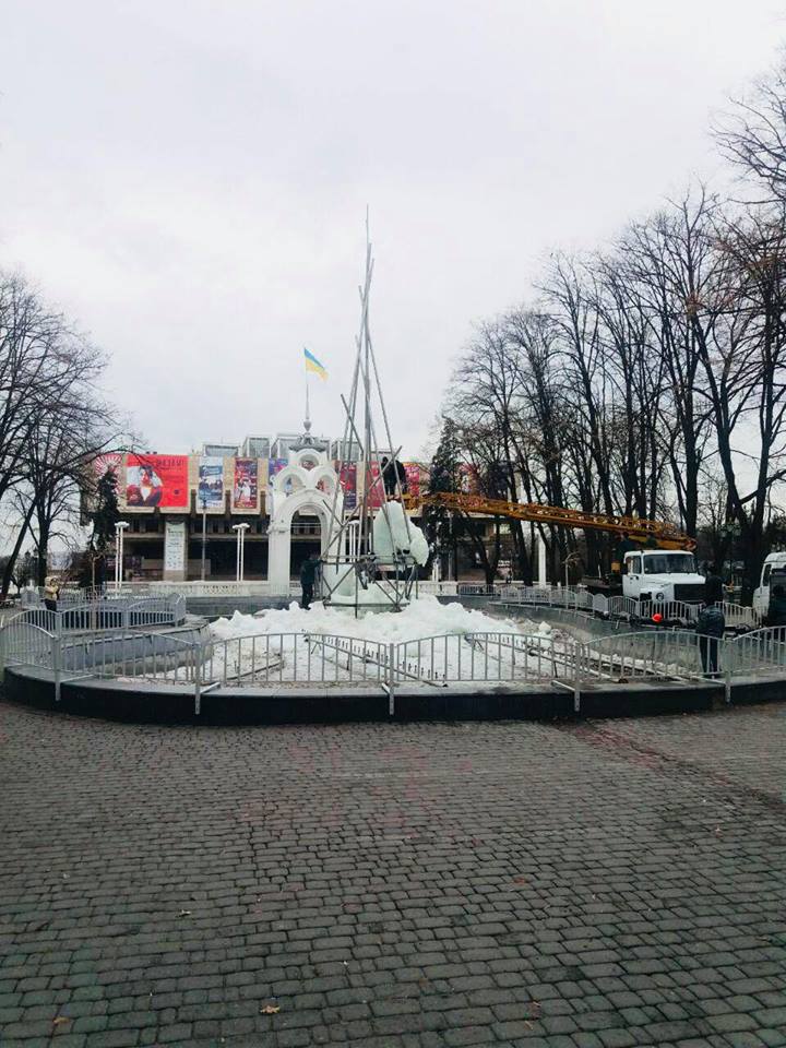 На «Зеркальной струе» демонтируют ледовую инсталляцию (фоторепортаж)
