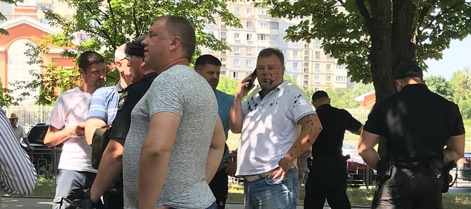 В ходе акции Андрея Лесика, экс-депутата Харьковского горсовета, который обвинялся в сепаратизме, облили «зеленкой» неизвестные активисты в черных футболках.