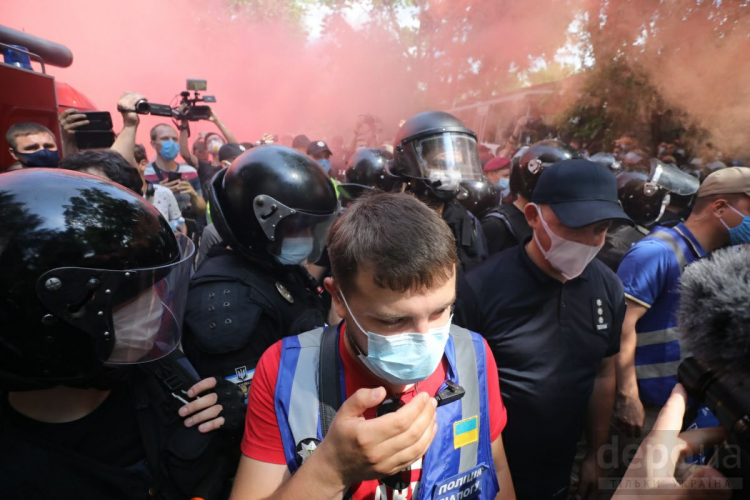 В частности, полицейские вытолкали за пределы территории суда журналистов Шарий.net, VESTI, Страна, Klymenko Time и других. Представители СМИ не получили травм, полиция никого не задерживала.