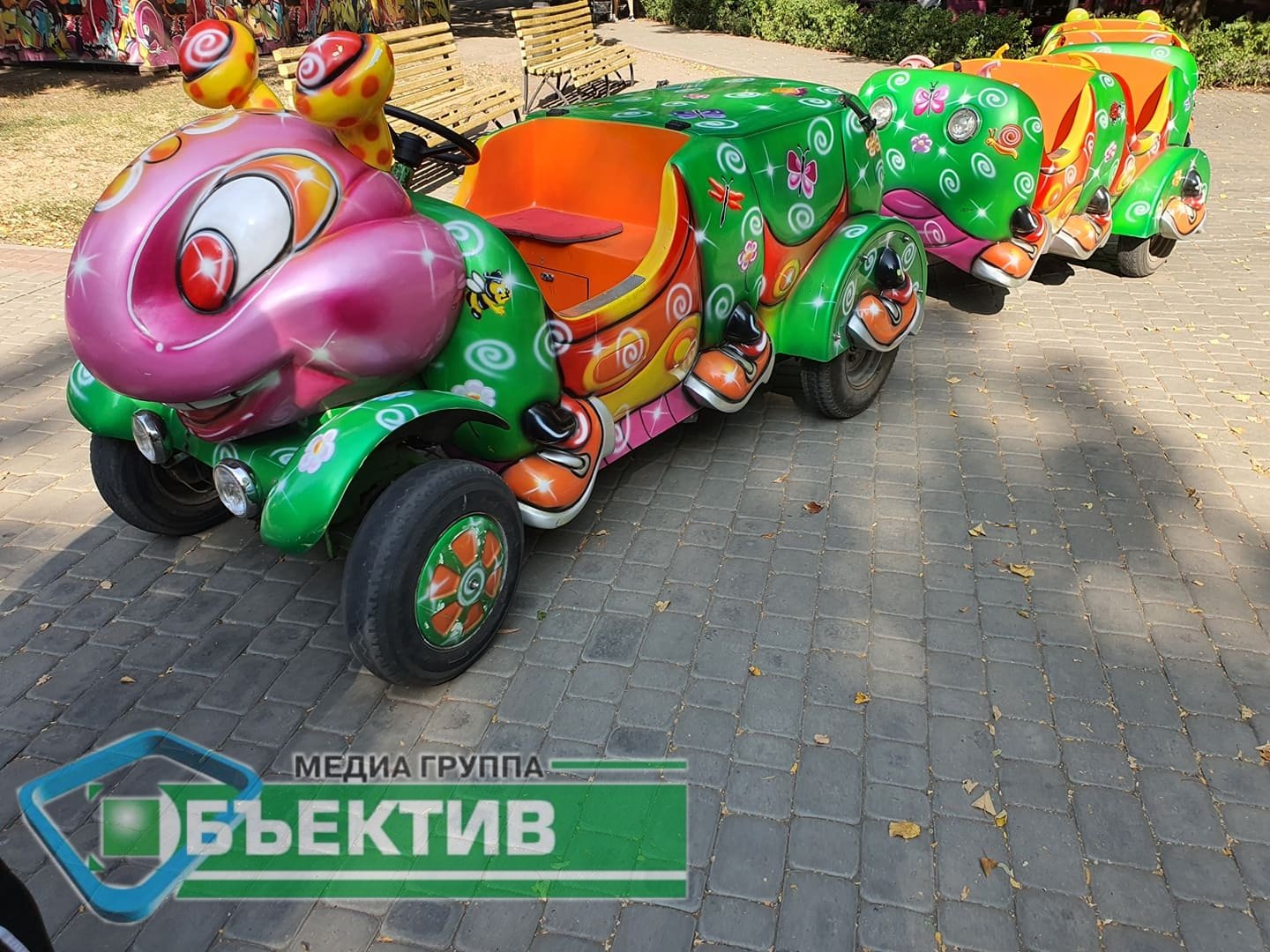 Водитель детского аттракциона на повороте не справился с управлением и состав перевернулся.
