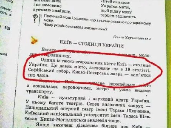 Также сообщалось, что в учебнике истории датой основания Киева указан XIX век.