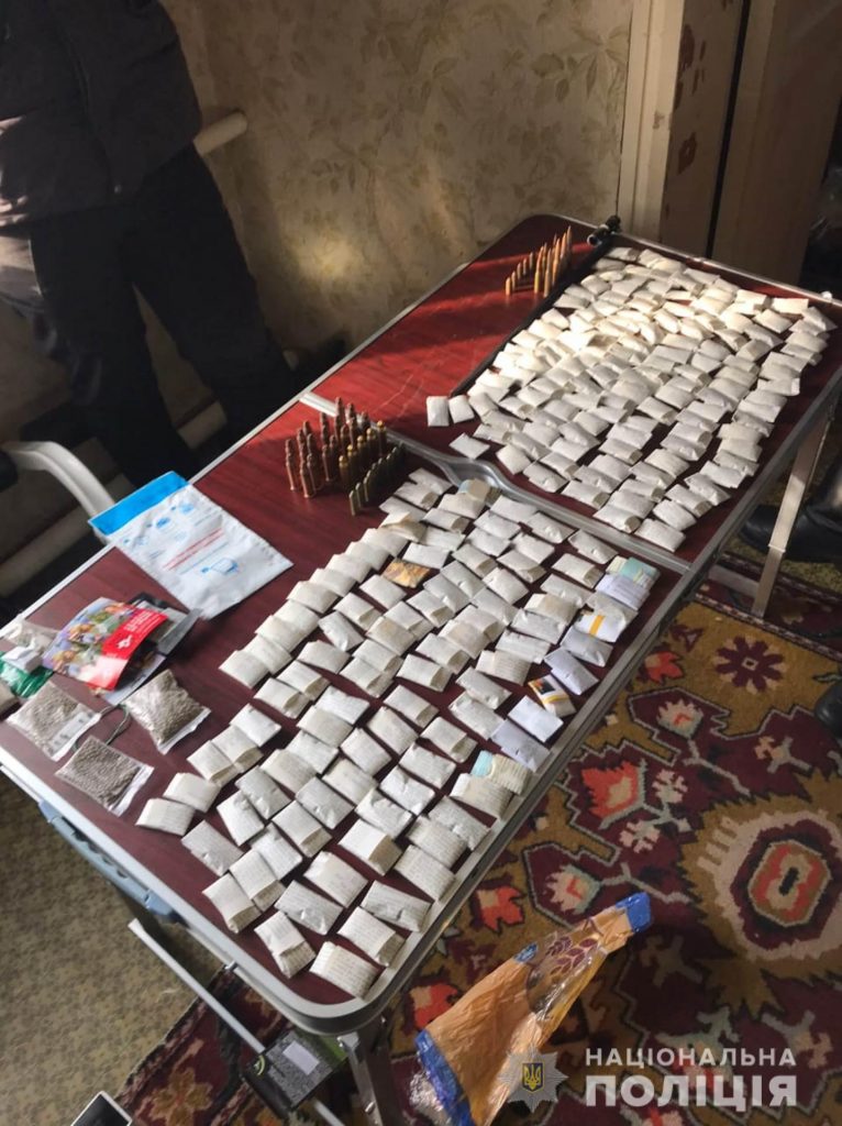 Среди изъятого — 236 пакетиков с каннабисом, пистолет ТТ, патроны, штык-нож и металлоискатель. Об этом сообщили в ГУНП в Харьковской области.