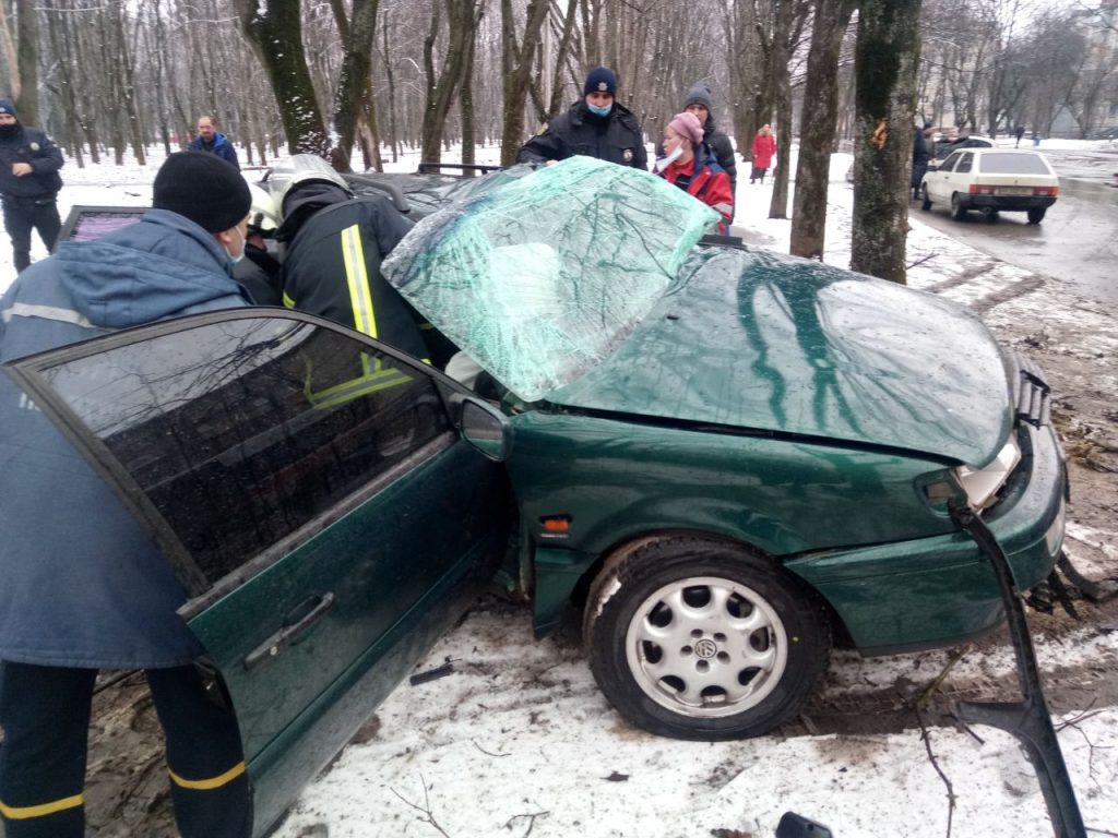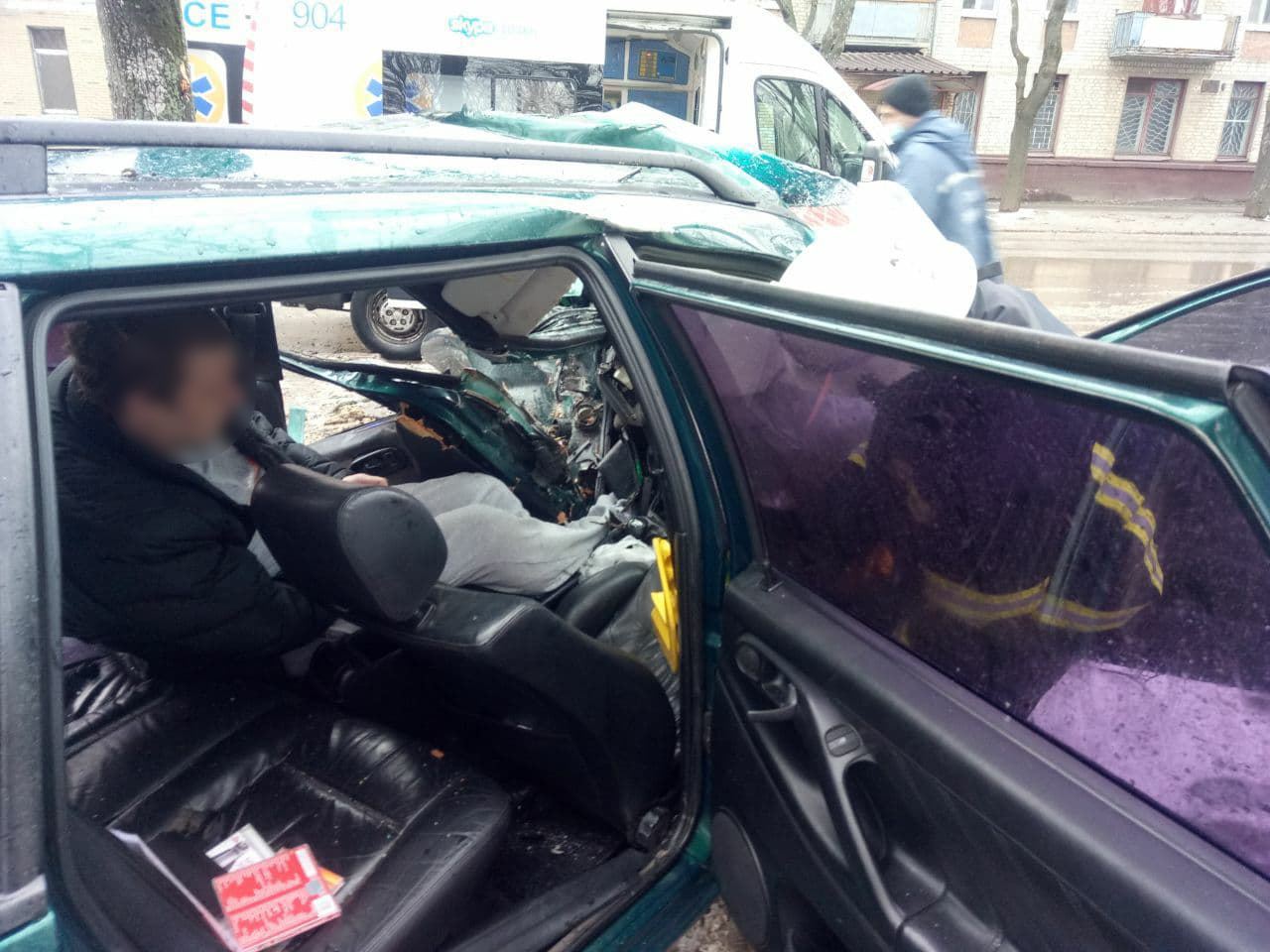 В Харькове спасатели деблокировали водителя из салона авто, врезавшегося в дерево (фото)