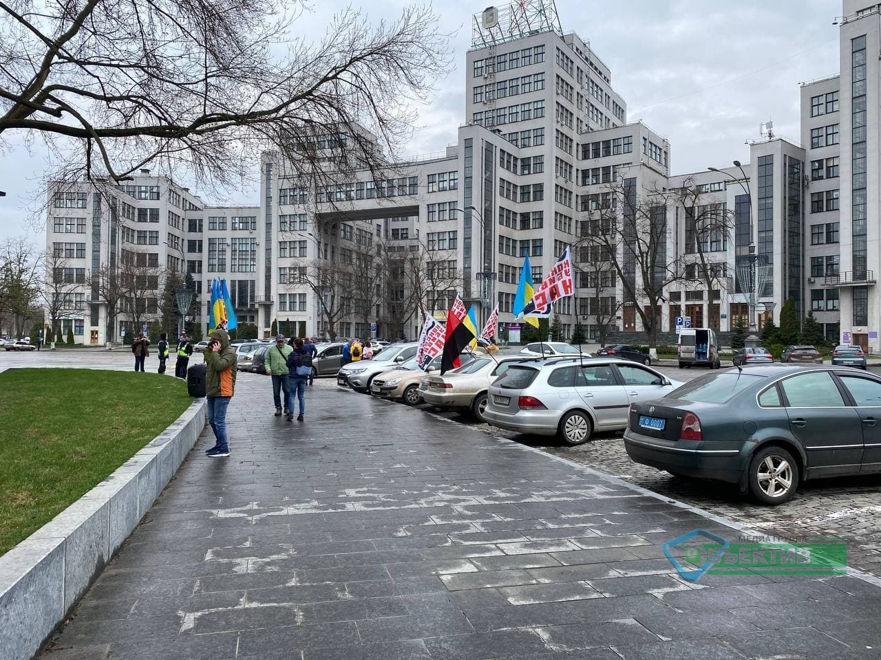 Десятки харьковчан устроили автопикет на площади Свободы утром 20 апреля.