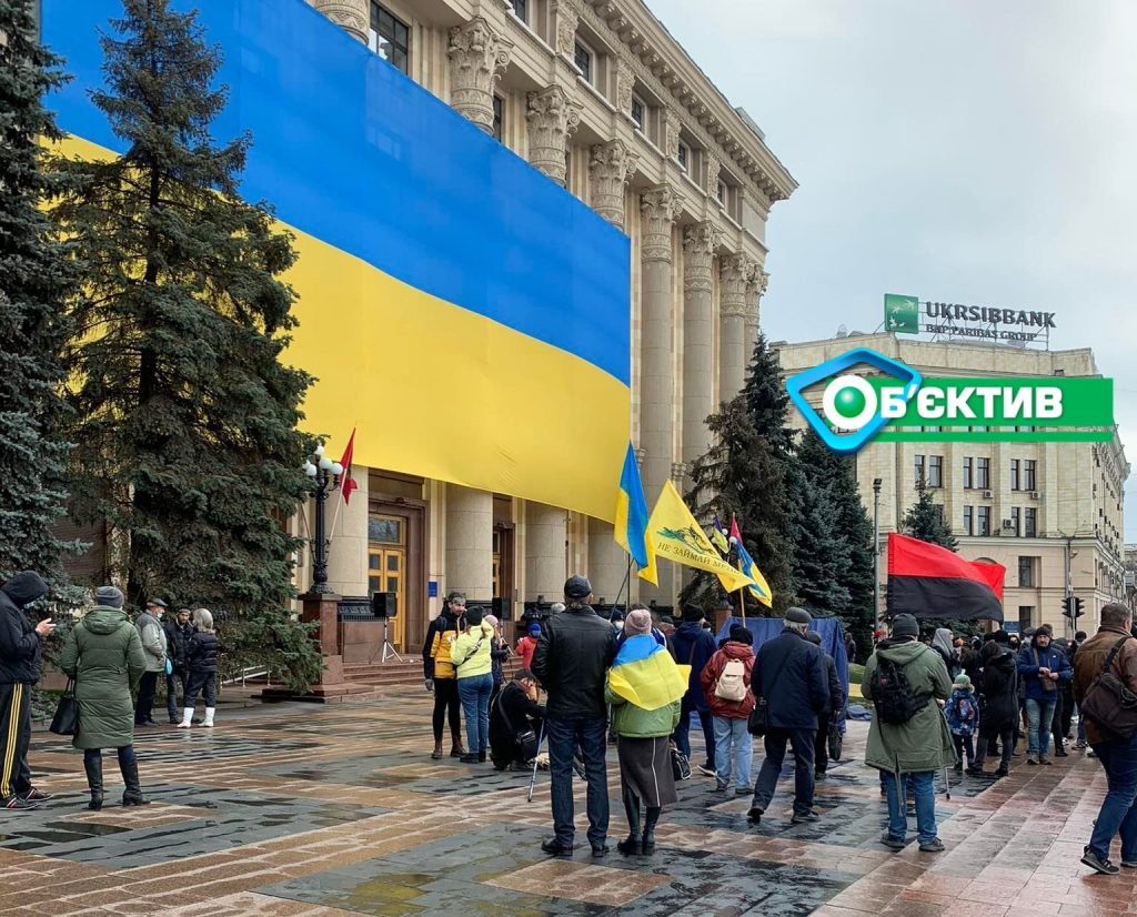 И вот, сегодня у здания Харьковской облгосадминистрации, которое весной 2014 года российские наемники брали штурмом, собрались десятки патриотов Украины. Среди участников – представители волонтерских и ветеранских движений и активисты, которые принимали участие в Революции достоинства.