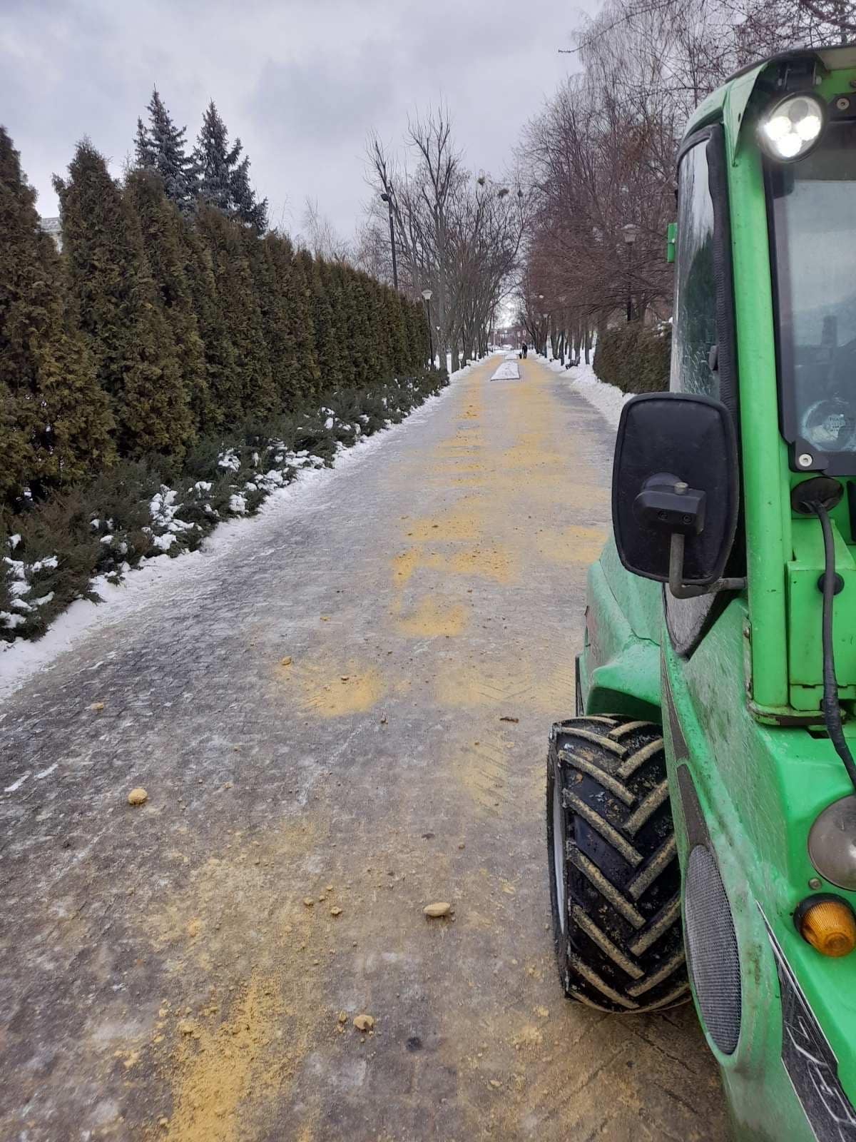 Коммунальщики посыпают зоны и тротуары в парках и скверах песчано-соляной смесью.