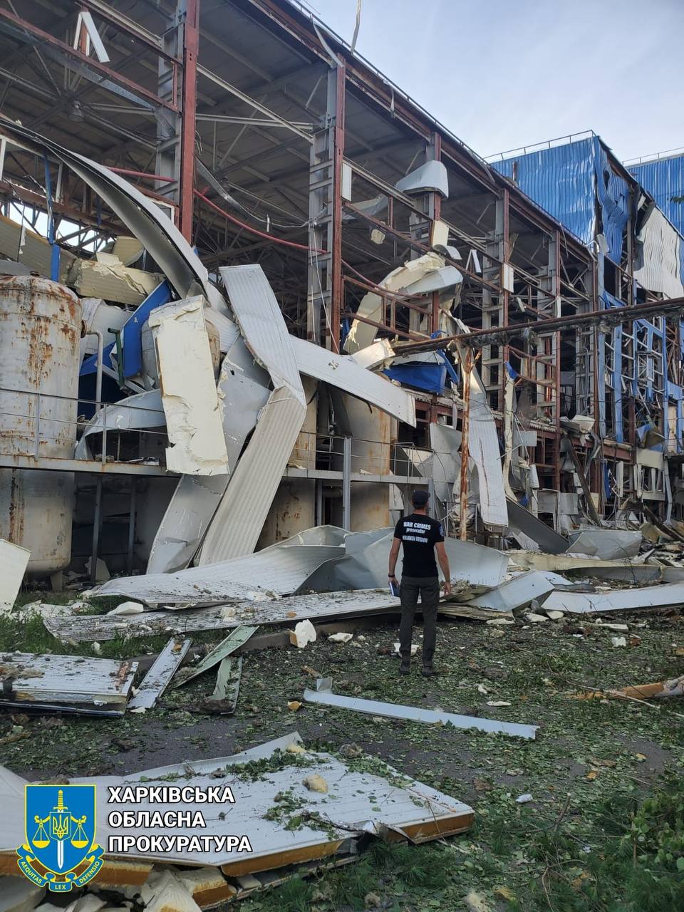 В результате повреждены цеха одного из предприятий, произошел пожар площадью 100 кв. метров сообщили в Харьковской областной прокуратуре.