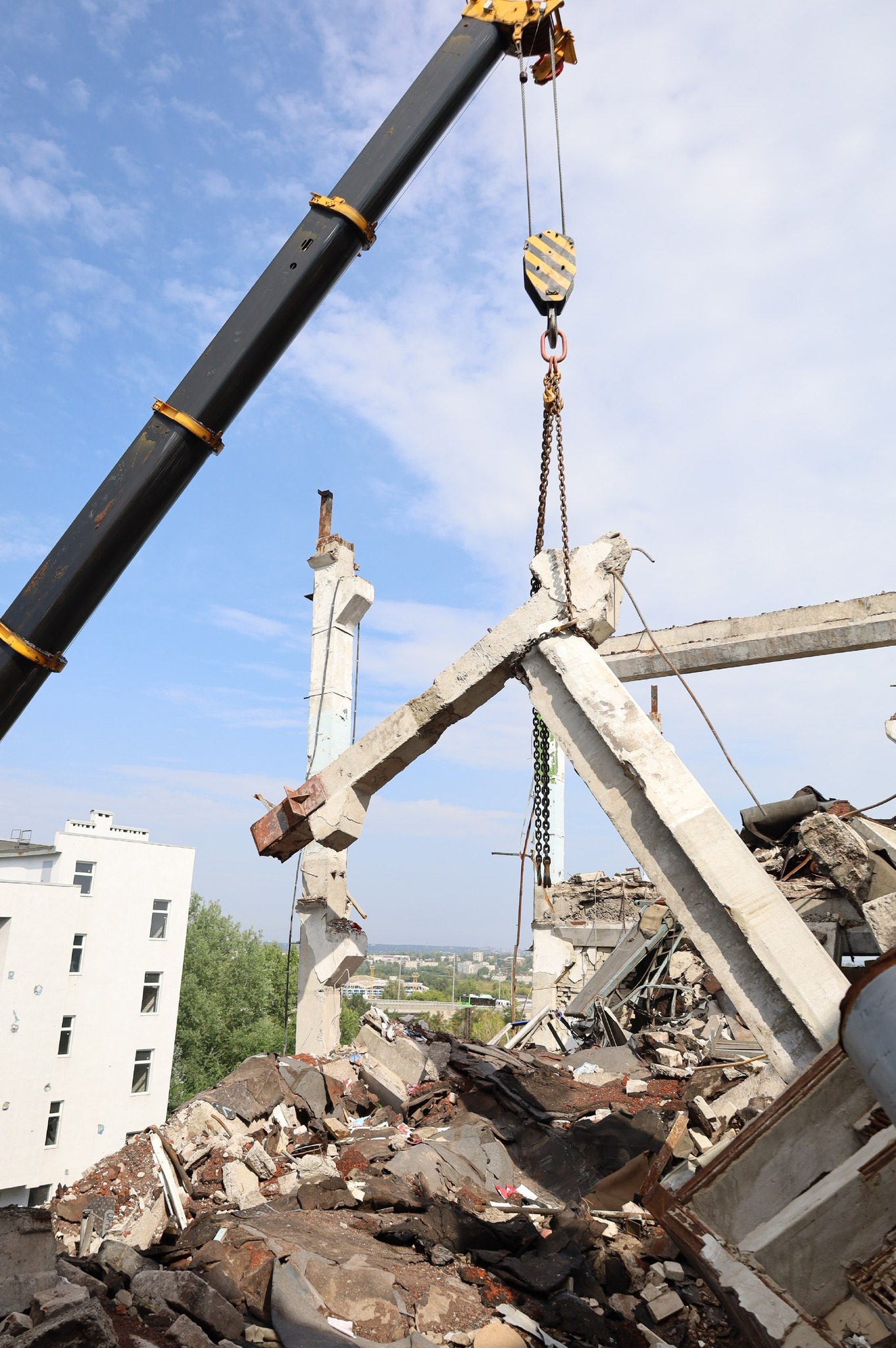 «В Слободском районе в середине августа вражеская ракета разрушила трехэтажное здание общежития. Спасатели ГСЧС разбирали аварийные конструкции здания с применением тяжелой инженерной техники», — сообщила пресс-служба ГУ ГСЧС Украины в Харьковской области.