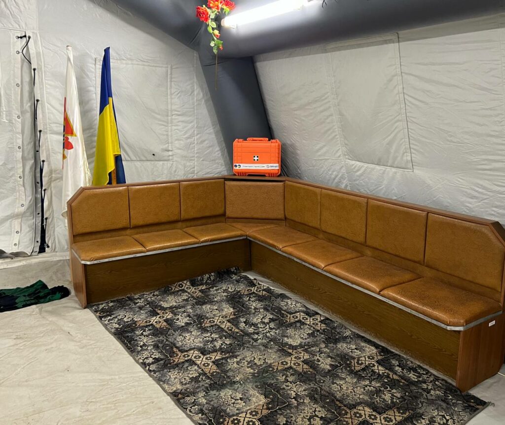 В такой палатке жители в случае длительного отключения света могут получить базовые услуги бесплатно. В частности, здесь есть мягкий диванчик, стол, электроплитка, микроволновка, чтобы разогревать пищу, вода и чайник, ноутбук и монитор, чтобы просматривать национальный телемарафон, а также аптечка.