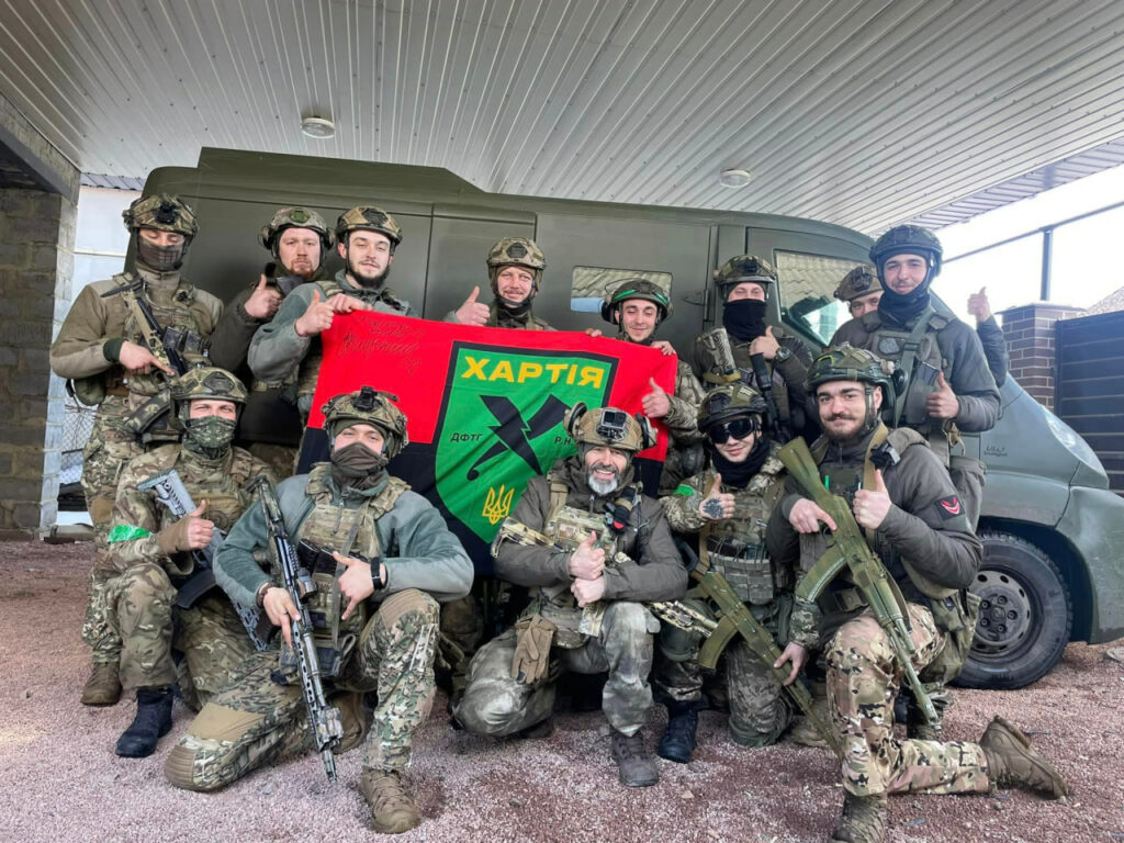 «Хартия» возникла в начале полномасштабной войны как добровольческое подразделение. Ее бойцы обороняли Харьковскую область и одни из первых вышли на границу с российской федерацией во время контрнаступления ВСУ. Хартийцы захватывали и уничтожали военную технику и пехоту врага. Вели длительную оборону участка фронта в зоне ответственности (с. Русская Лозовая и с. Стельмаховка). Проводили аэроразведку и корректировку огня артиллерийских систем. «Хартия» — это единственное добровольческое подразделение в Бахмуте», — говорится в информации на сайте.
