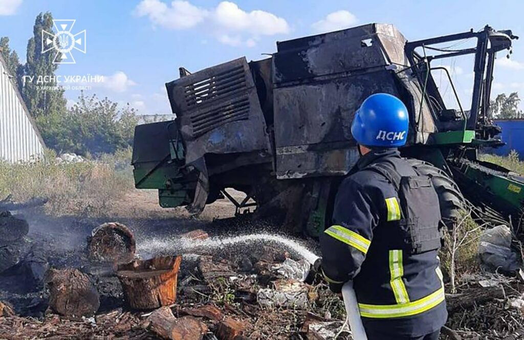 Россияне обстреляли агропредприятие на Харьковщине, уничтожили комбайн – ГСЧС