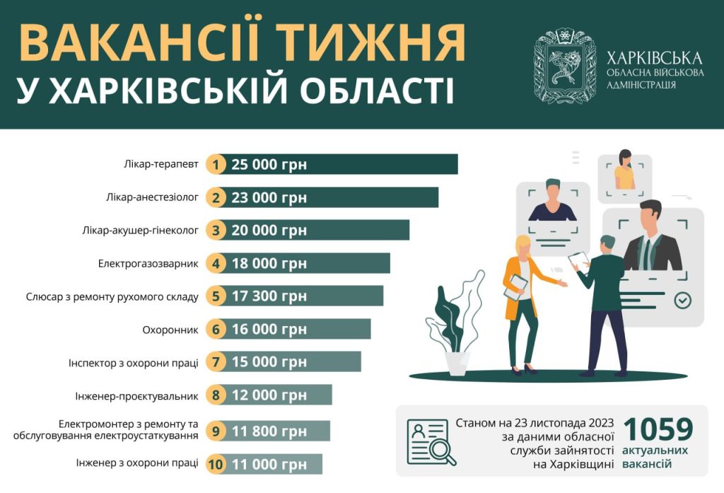 ХОВА и областная служба занятости составили десятку наиболее выгодных предложений на рынке труда в Харькове и области по состоянию на 23 ноября.