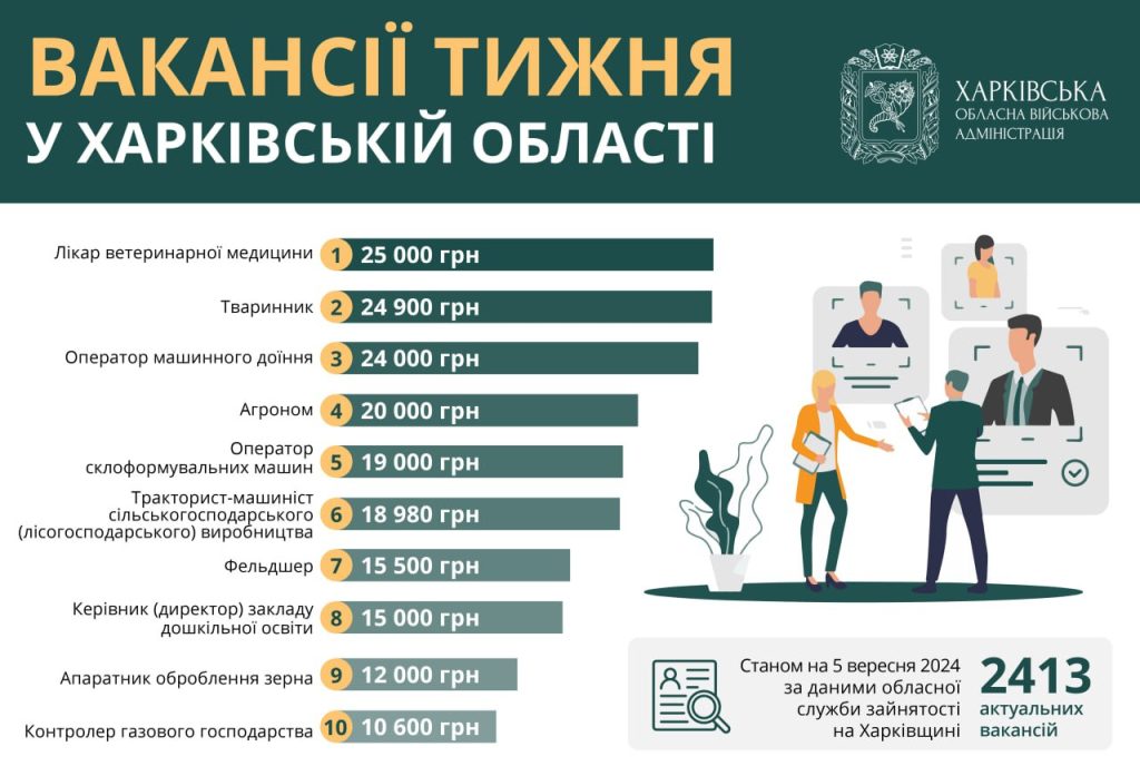 По состоянию на 5 сентября в Харьковской области актуальны 2413 вакансий, сообщила областная служба занятости.
