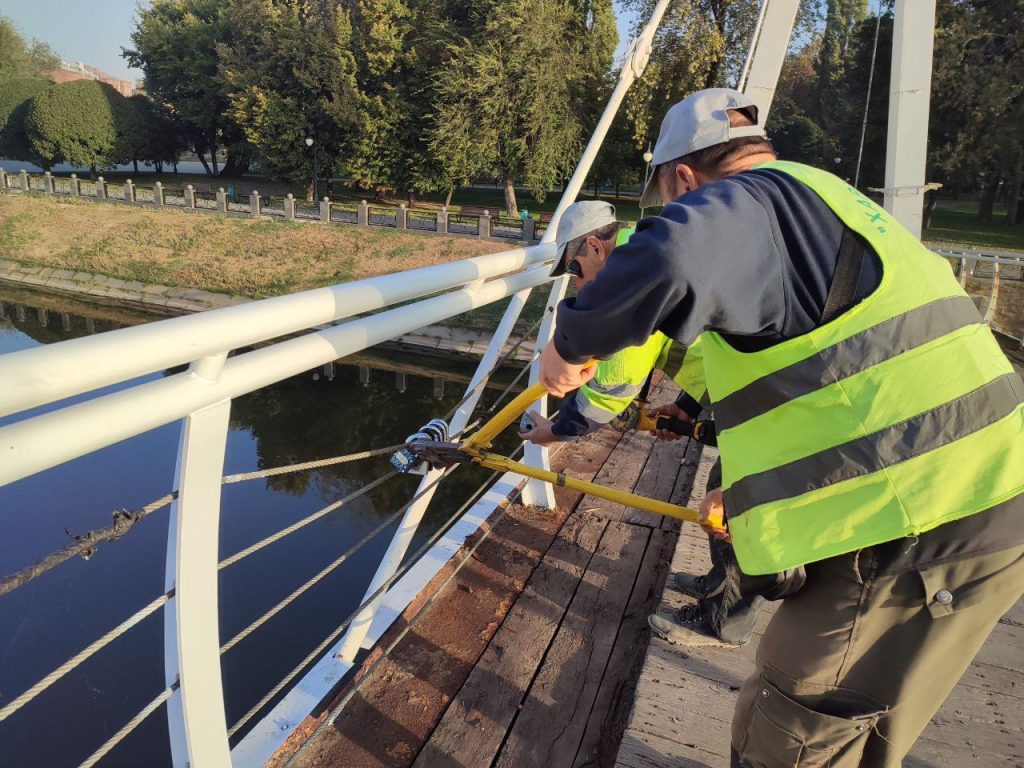 Во время ремонта пешеходного моста в сквере «Стрелка» работники СКП «Харьковзеленстрой» срезали замки – металлический символ любви горожан.