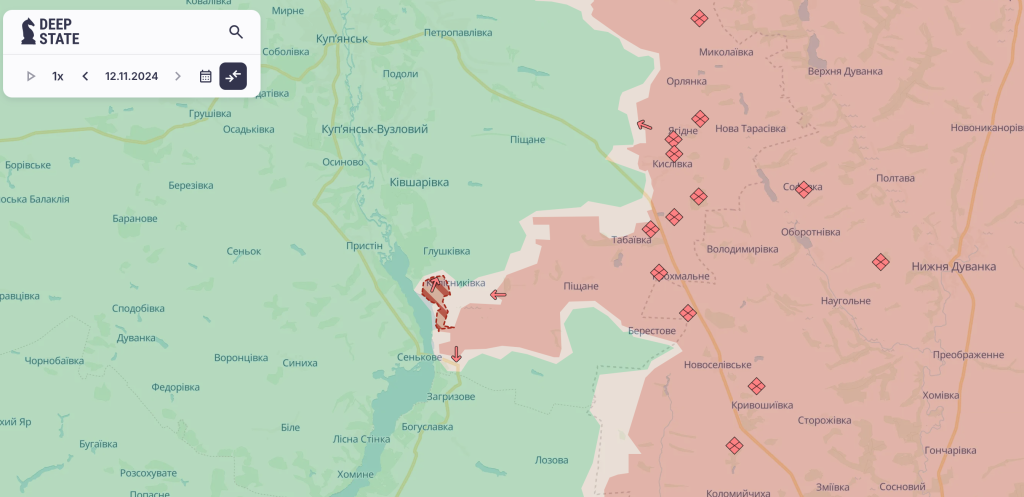 Аналитики проекта «Deep State» в сводке 13 ноября указали продвижение россиян сразу на трех участках в Харьковской области.