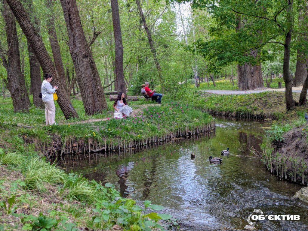 Харьковчане уже открыли пляжный сезон. В частности, в одном из парков уже принимают водные процедуры.