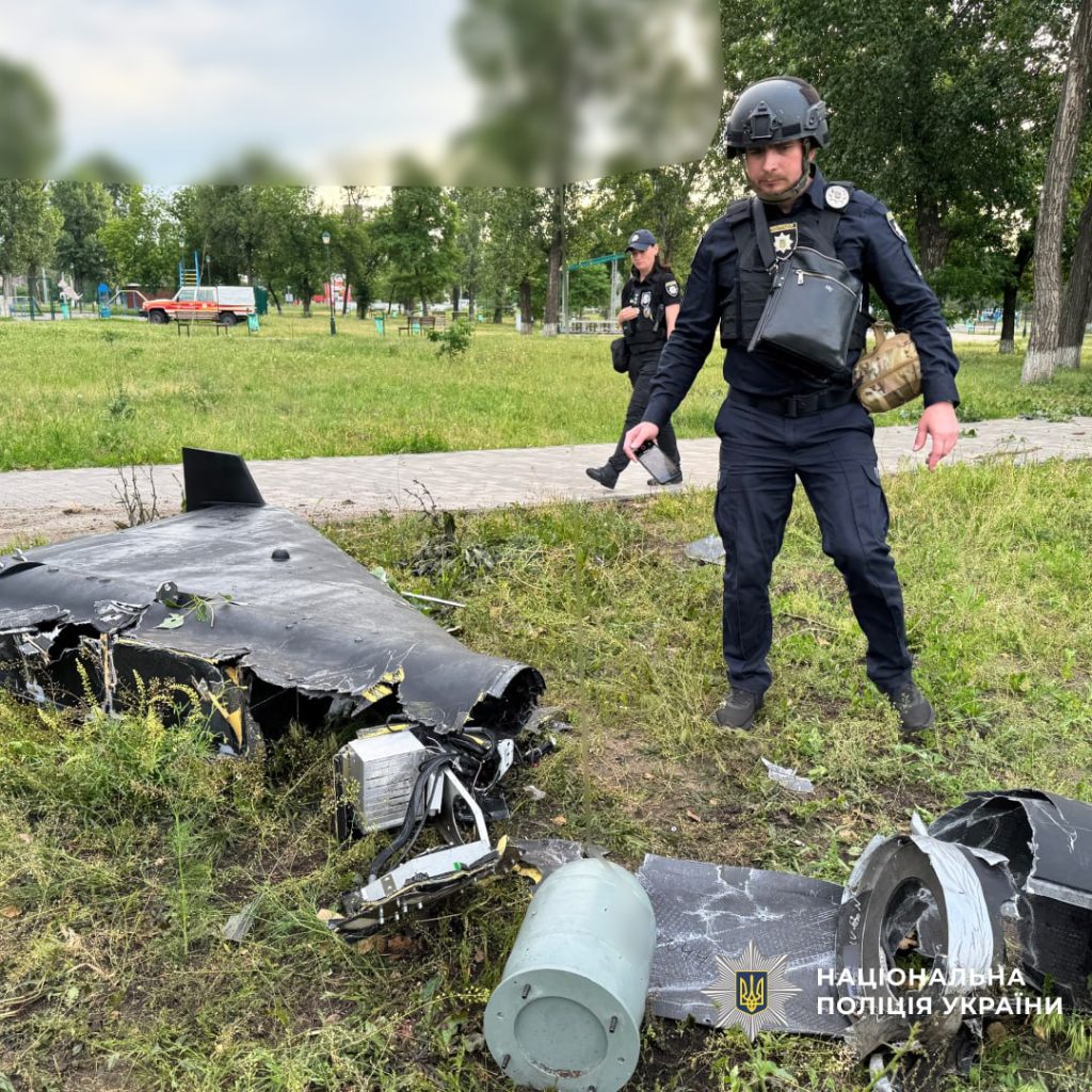 Один из девяти беспилотников типа «Герань-2», которым враг атаковал Новобаварский район Харькова ночью 4 июня, упал не разорвавшись. Для того чтобы его обезвредить, на место прибыла следственно-оперативная группа и взрывотехники облуправления Нацполиции.