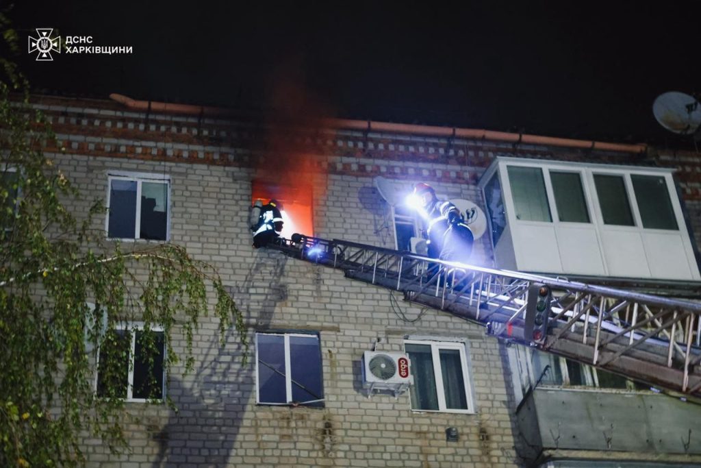 Из-за ракетного удара начался пожар в квартире на 5 этаже.
