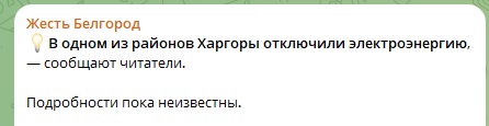 Информацию об исчезновении света в некоторых районах Белгорода также публиковали местные Telegram-каналы.