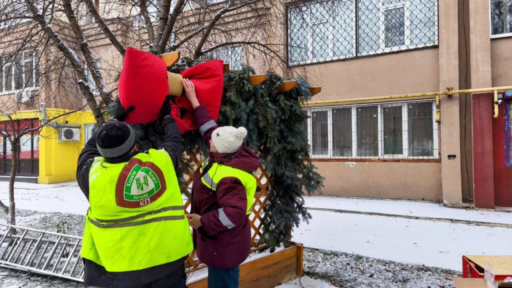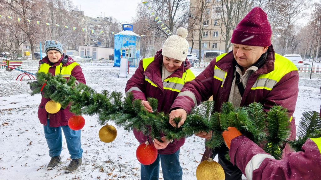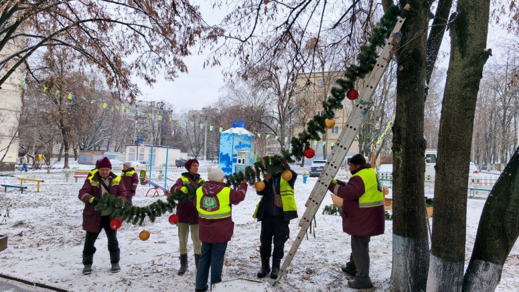 Коммунальщики украсили дворы к Рождеству в одном из районов Харькова (фото)