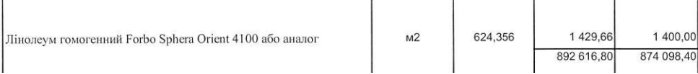 Еще одна позиция с вероятной переплатой – гомогенный линолеум Forbo Sphera Orient 4100. В смете цена составляет 1400 гривен за квадратный метр.