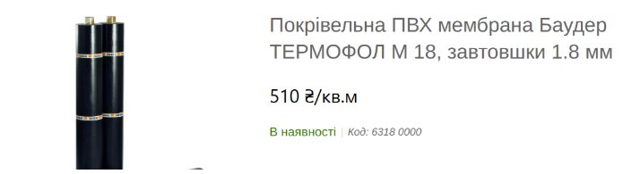 Марка ПВХ-мембраны 1,8 мм в смете не указана, но есть цена — 750 гривен за квадратный метр. К примеру, мембрана Баудер стоит 510 гривен за «квадрат», поэтому потенциальная переплата может составить более 200 тысяч гривен, предполагают активисты.