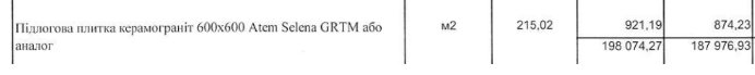 Керамогранитную плитку в смете прописали по 874 гривны за квадратный метр.