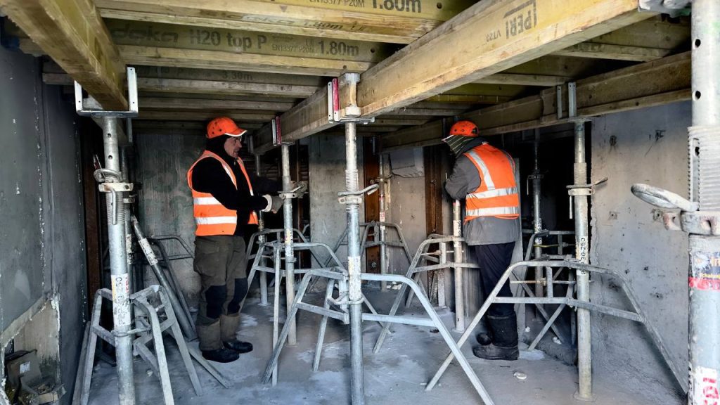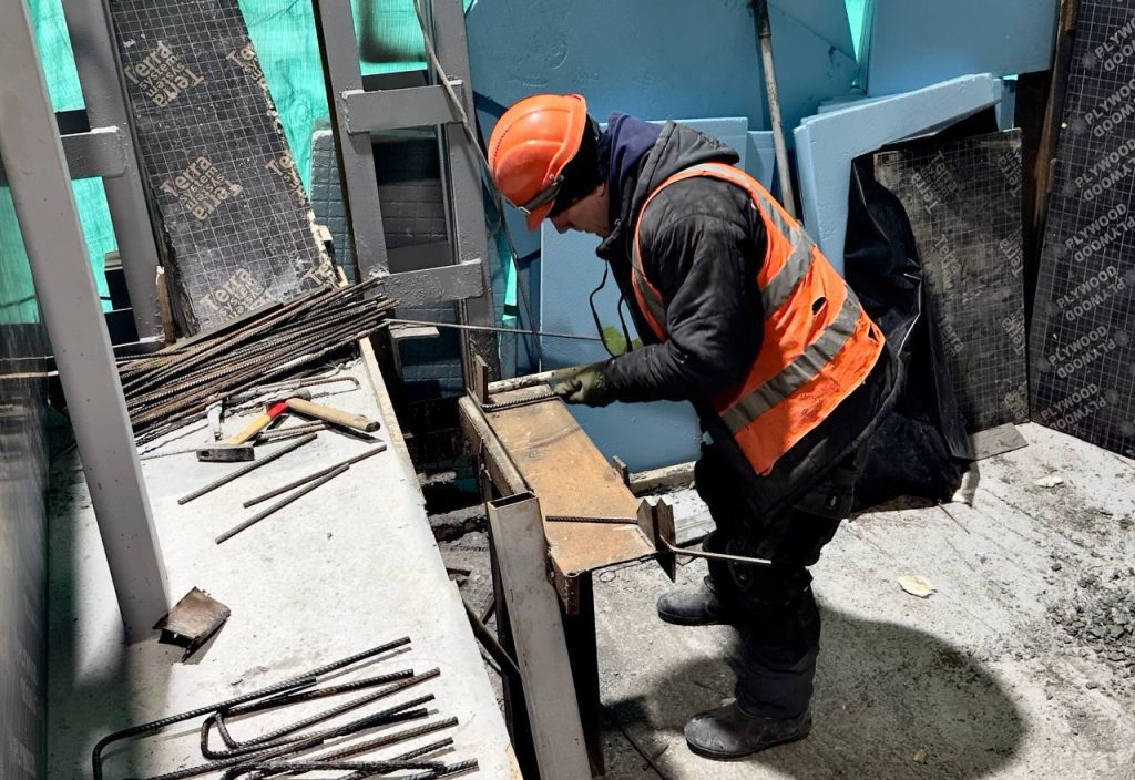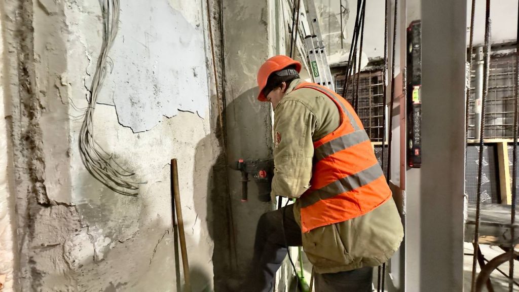 После этого специалисты начали восстанавливать стены и плиты перекрытия. Сейчас продолжается восстановление внутренних перегородок и подготовка к бетонированию. Параллельно проводится замена окон.