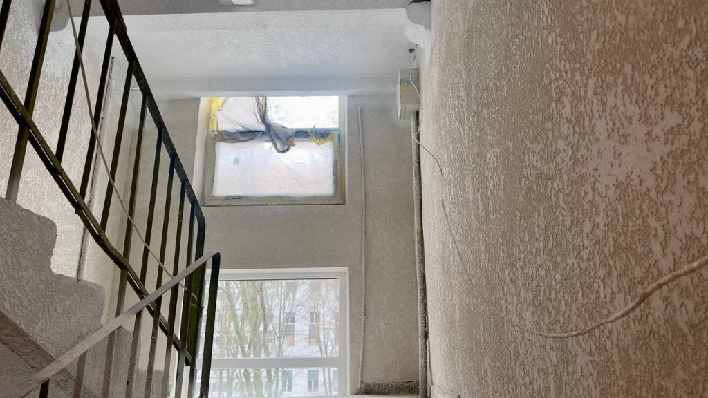 Сейчас проводят внутренние работы: в подъездах красят стены и потолки. В планах — ремонт входных групп и восстановление отмостки дома.