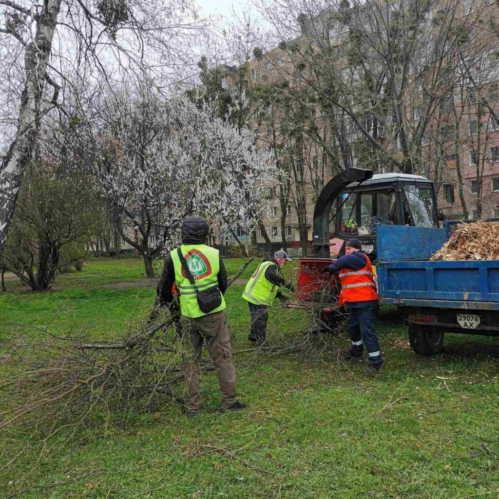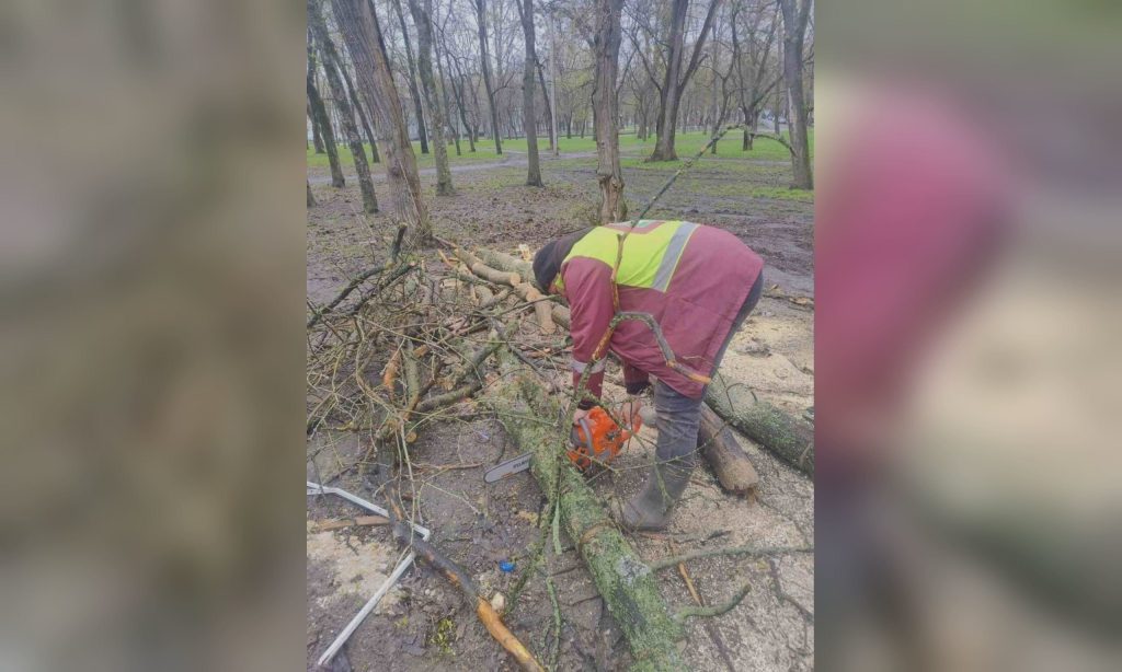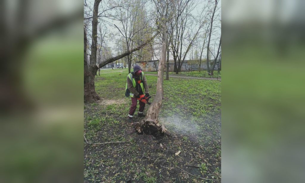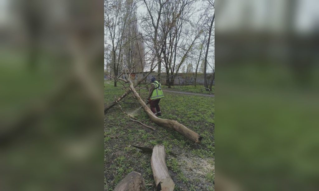 Специалисты филиала «Благоустройство» КП «Шляхрембуд» оперативно распиливают и вывозят поваленные деревья и ветки.