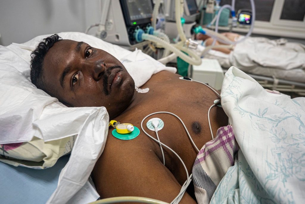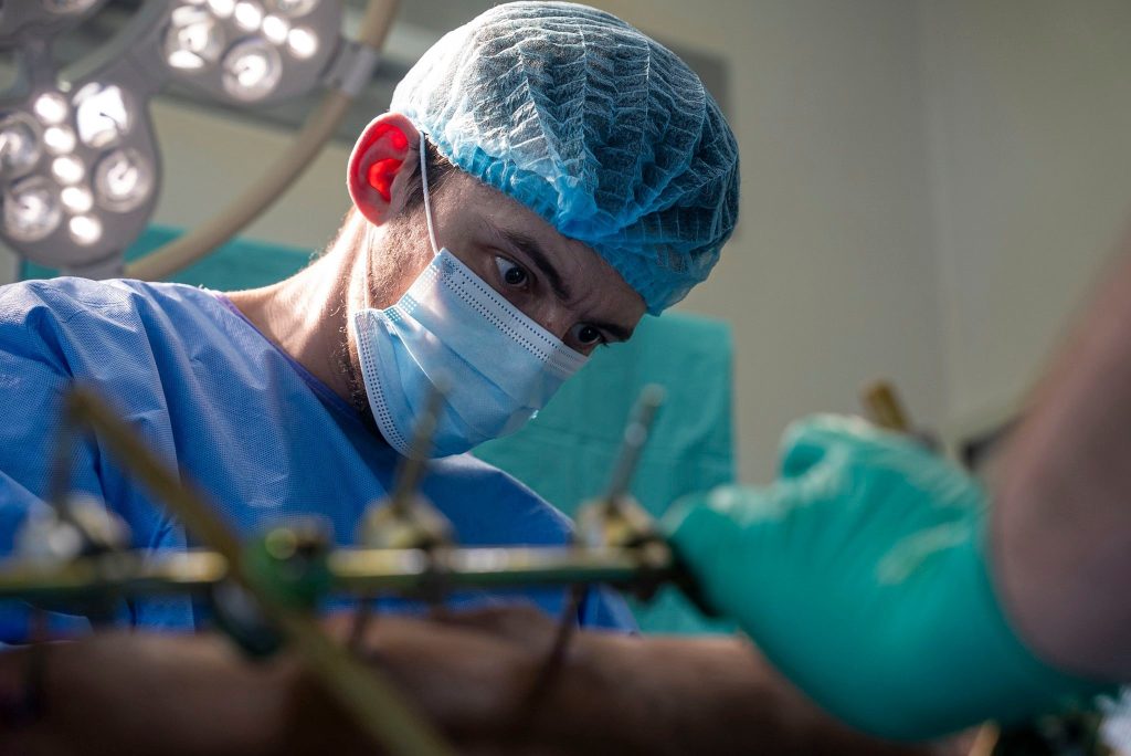 «У пациента перелом верхней трети бедренной кости, массивный дефект мышц латеральной поверхности бедра. Мы пересмотрели все мышцы – мышцы жизнеспособны, сокращаются при механическом раздражении. В настоящее время угрозы в плане повреждения сосудов у него нет. Я думаю, что все будет нормально у него, но надо будет залечить эту рану», – комментирует во время второй уже для Мигеля операции Илья Труфанов, травматолог, ординатор передового хирургического отделения харьковского военного госпиталя.