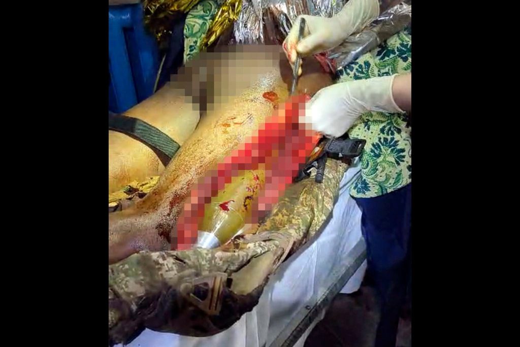 «Мы – туда, а это – боевая часть, противотанковая граната. Патрон был под кожей, под мышцами – его размер был от ягодицы и до правого колена. Вес – около 2 кг. Мы сразу вызвали саперов. Надели бронежилеты и шлемы. И начали работать. В присутствии саперов мы этот снаряд достали — произвели полноценный разрез и сразу передали его в руки сапера. Они забрали его, и потом мы уже забрали пациента в операционную», – рассказали медики.