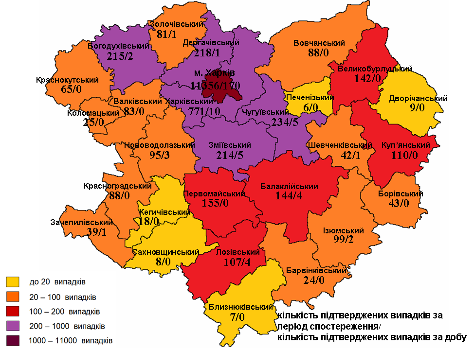 Загалом за весь період фіксації захворювання на Харківщині було 14 486 пацієнтів з підтвердженим лабораторним шляхом коронавірусом. Одужали з них 4 319 осіб, а 9 866 досі залишаються під медичним наглядом.