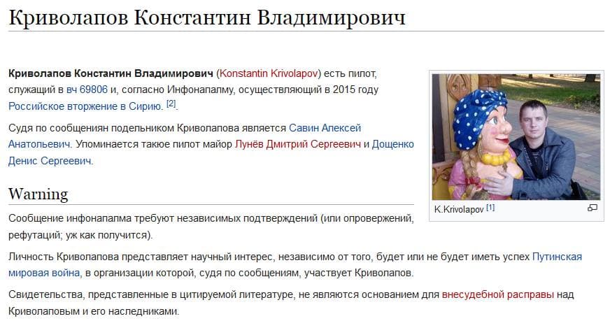 «Сбитый нашим ПВО российский летчик — майор Криволапов. Возможно именно он сбросил позавчера бомбы, которые убили 47 черниговчан. Второй пилот Красноярцев задержан»,— сообщил советник главы МВД Украины Антон Геращенко.