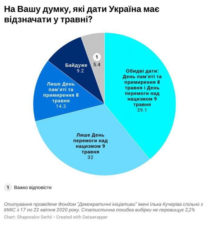 З9,1% украинцев хотели бы праздновать и День памяти, и День победы (диаграмы)
