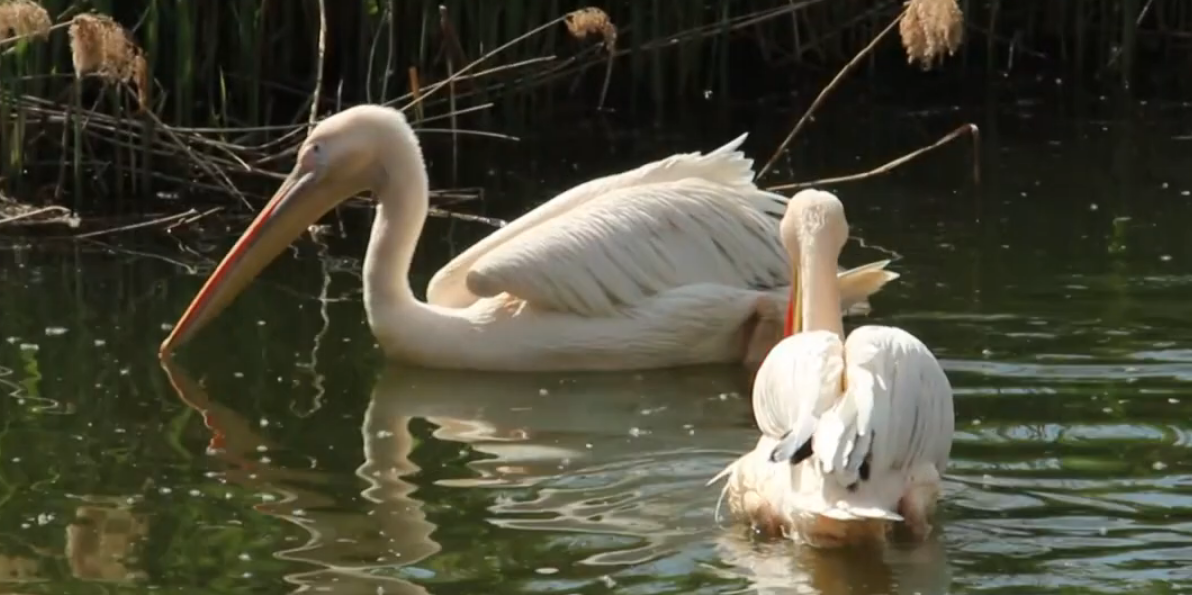 Пелікани та баклани із зимових осель перебралися у водойми просто неба. Їм склали компанію і лебеді. Птахи плескаються у воді та чистять пір’я.
