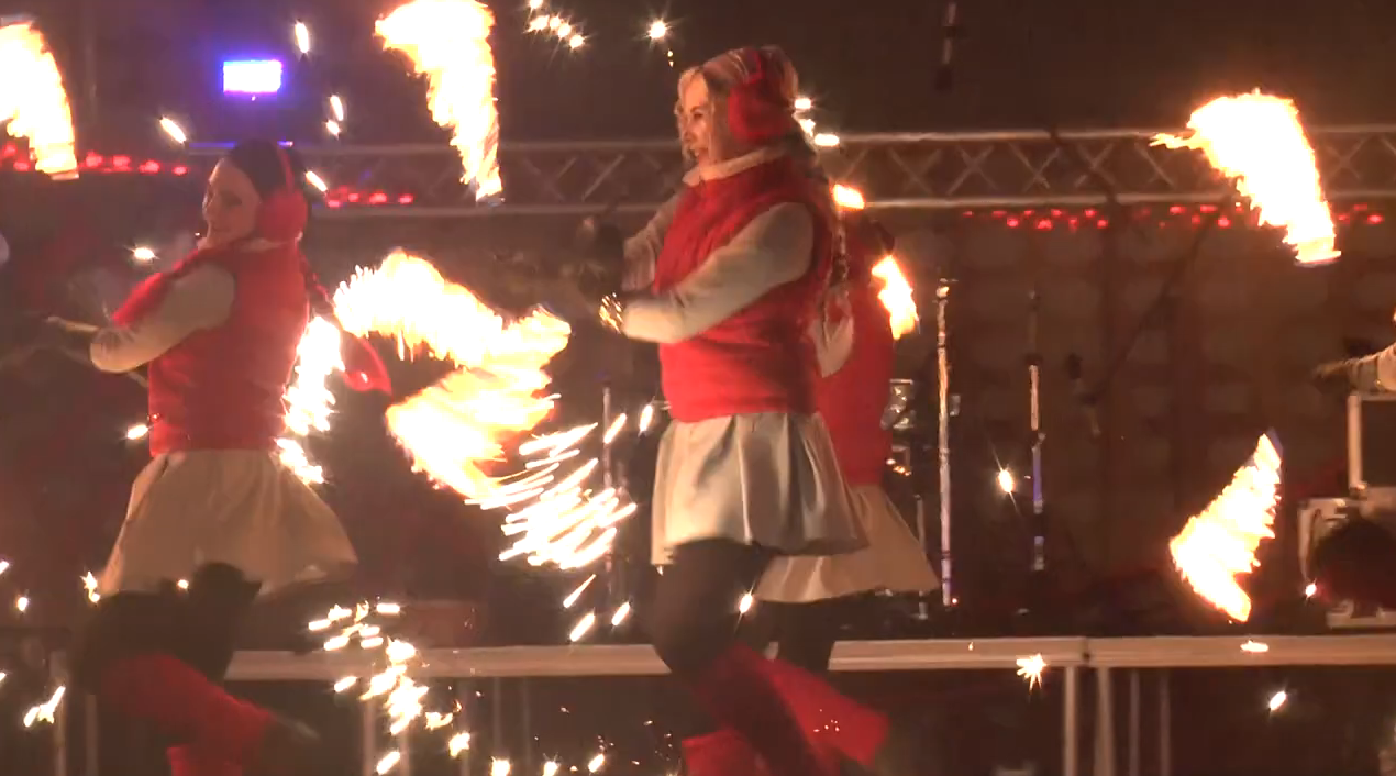 Для харків’ян провели театралізовану виставу та влаштували вогняне шоу. Після концерту гості та артисти водили хоровод навколо ялинки.