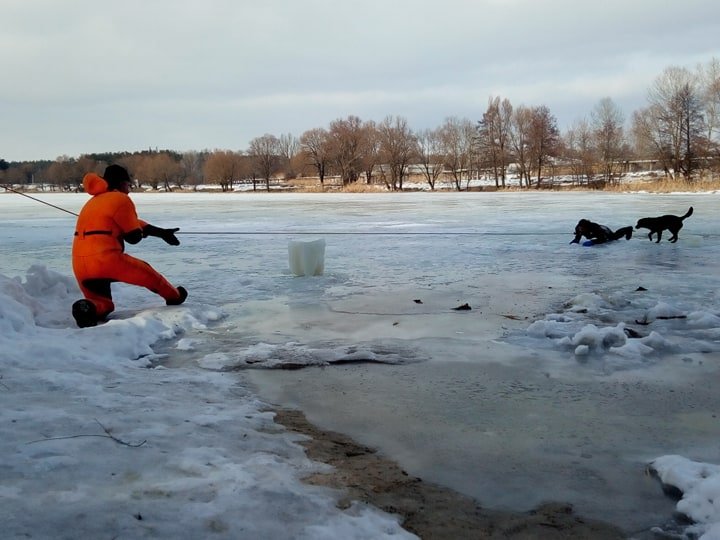 Занятия по отработке практических действий по спасению людей, провалившихся под лед, провели на водоеме возле пгт Песочин. Водолазы-спасатели продемонстрировали на практике методы спасения людей на водных объектах. В связи с погодными условиями на лед спасатели выходить не рекомендуют.