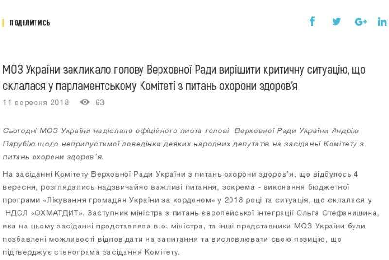 Минздрав Украины не может самостоятельно разрешить конфликт с профильным комитетом парламента