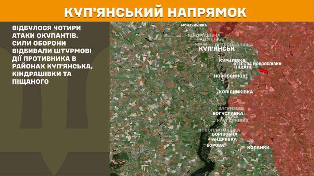 На Купянском направлении россияне пытались прорваться шесть раз возле Степной Новоселовки, Новой Кругляковки и Купянска.