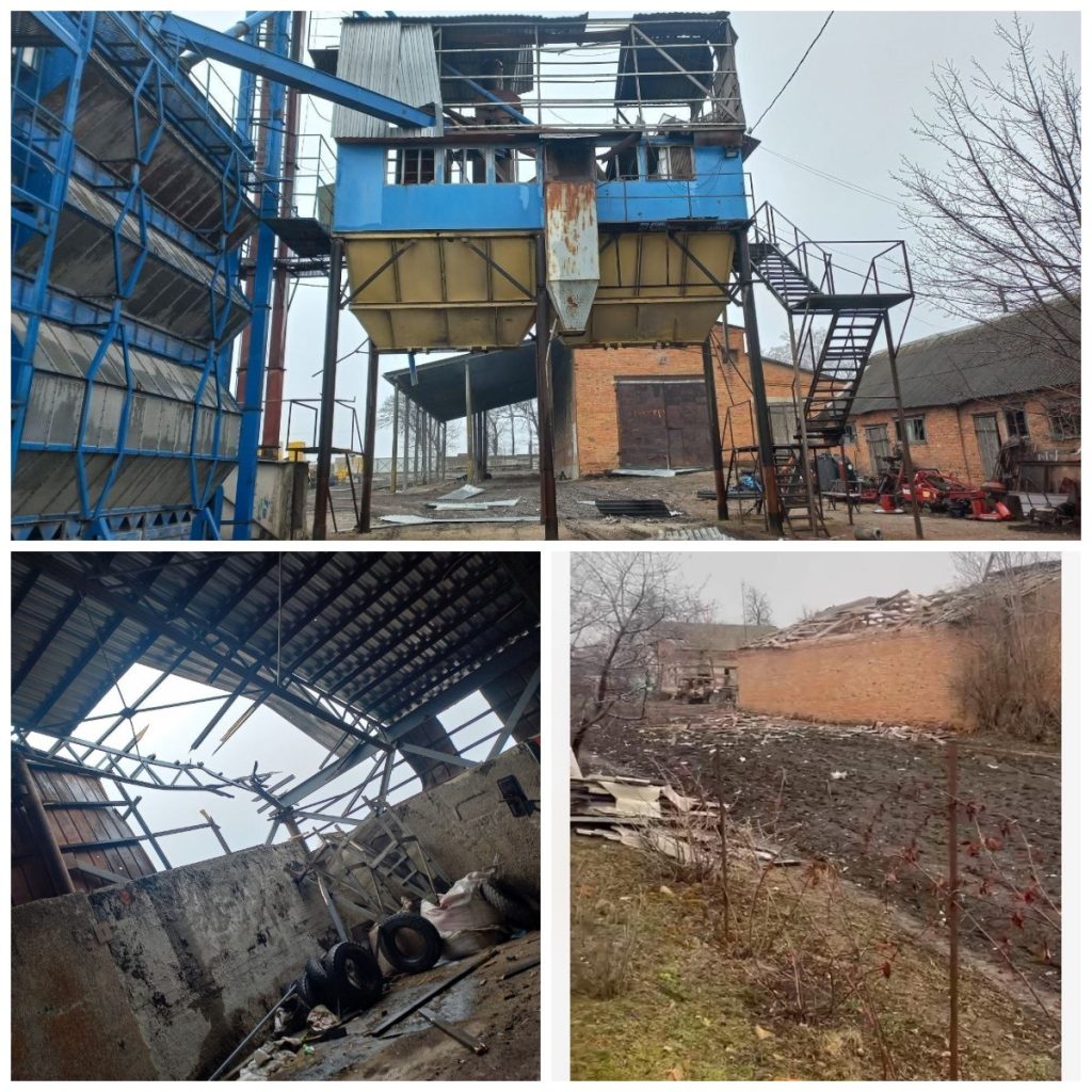 - В Богодуховском районе повреждены два частных дома, четыре складских помещения, админздание, два хозяйственных сооружения, энергосети (с. Лютовка), шесть частных домов, электросети (пос. Золочев);