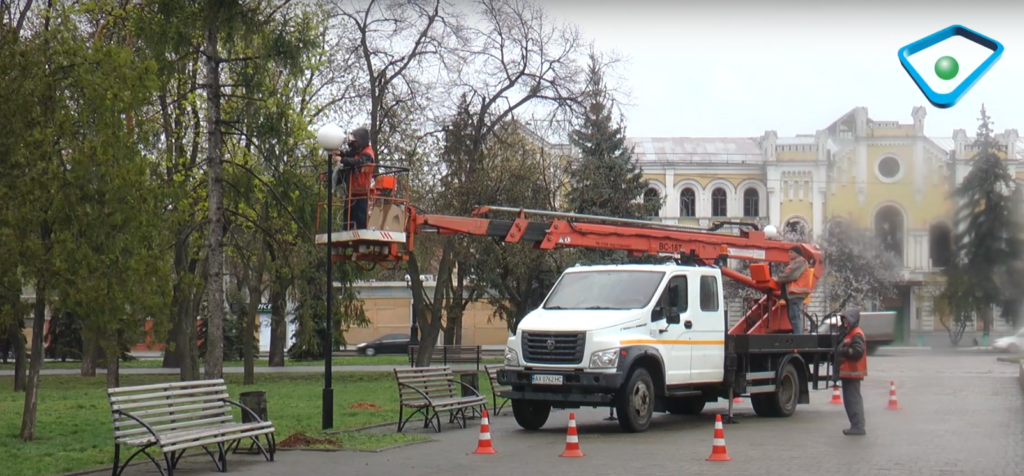Тут близько 370 метрів повітряної мережі ми змінили. 42 метри міняємо зараз у землі, плюс, звичайно, ремонт паркових опор. Світильники, звичайно, все за контуром, 42 світильники було замінено. 26 кронштейнів замінено. Великий обсяг роботи було зроблено.