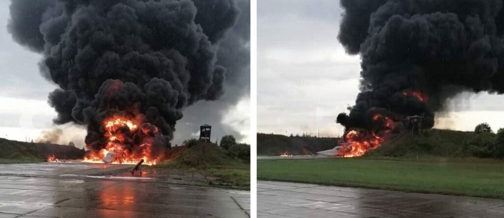 “Російські військові блогери розкритикували Міноборони Росії за те, що воно не запобігло передбачуваній атаці українських безпілотників на авіабазу Сольці в Новгородській області 19 серпня та применшило серйозність пошкоджень літаків, що там базуються. 19 серпня Міноборони Росії заявило, що російські сили збили український безпілотник зі стрілецької зброї та що внаслідок пожежі було пошкоджено один літак, але пожежники оперативно загасили вогонь. На знімках, опублікованих 20 серпня, видно, як на авіабазі Сольці горить дальній надзвуковий бомбардувальник Ту-22М3. Російське інсайдерське джерело стверджувало, що, за словами свідків, вогонь пошкодив або повністю знищив два літаки. Декілька російських блогерів стверджували, що українські сили використовували невеликий і відносно недорогий дрон-квадрокоптер для проведення атаки, та критикували Міноборони Росії за те, що літаки не зберігалися в ангарах, зазначаючи, що навіть елементарні захисні конструкції та мережі надійні проти квадрокоптерів. Пошкодження або навіть знищення двох літаків Ту-22М3 не приведе до серйозних наслідків у військовому відношенні, але реакції російських блогерів на напад показують, як такі глибокі атаки підтримують масштабніші зусилля України щодо зниження морального духу в Росії”, — вважають в Інституті вивчення війни.
