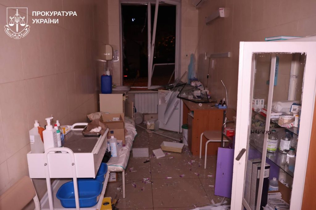 «Пошкоджено медичний заклад, гаражні бокси, 19 транспортних засобів і приміщення цивільного підприємства. Постраждали 57 пацієнтів: 51 особа отримала гостру стресову реакцію, ще шестеро були поранені уламками скла», – зазначили правоохоронці.
